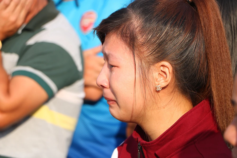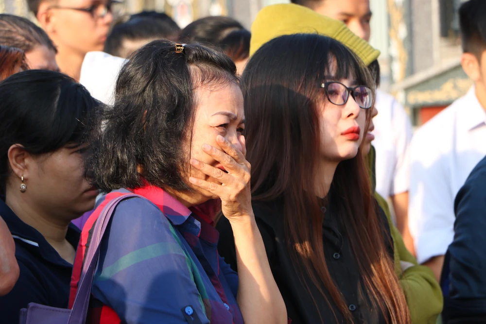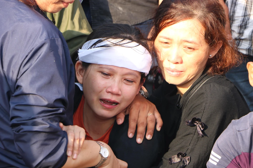 Hai người con gái của bà Cúc lả đi, nước mắt giàn giụa, tiếng khóc nấc nghẹn ngào. Tiếng gọi con của chị Trần Thị Minh Phương vang lên yếu ớt giữa dòng người đưa tiễn “con ơi… con ơi…”.