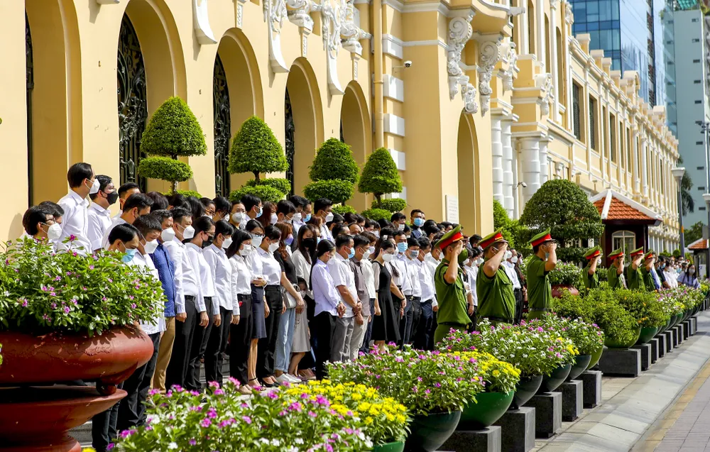 Trên đường về nơi an nghỉ, đoàn xe tang đã đi ngang qua trụ sở UBND TP.HCM trong sự tiếc thương vô hạn của cán bộ, công chức, viên chức, người dân TP.HCM.