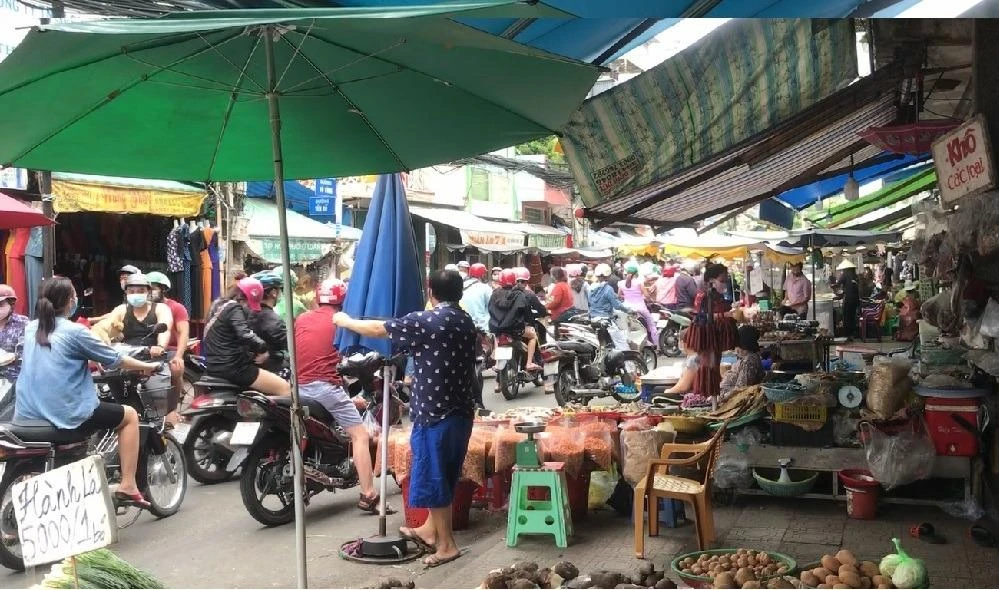 Từ sớm đến chiều, các khu chợ dân sinh tự phát như chợ trên đường Hiệp Bình (quận Thủ Đức), chợ Bà Chiểu (Bình Thạnh), chợ tự phát bao quanh khu chợ Phạm Văn Hai (Tân Bình).., đều trong tình trạng người và xe đông đúc dù đang trong thời gian giãn cách xã hội. Tuy nhiên, việc giãn cách tại các chợ dân sinh còn thấp, làm gia tăng lo ngại lây lan dịch COVID-19.