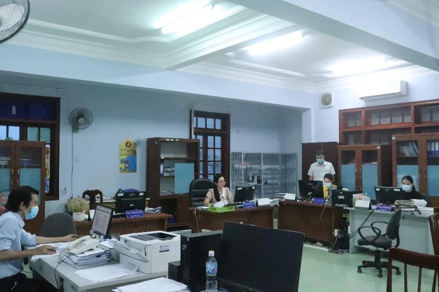 Nhân viên BHXH tỉnh Phú Yên làm việc cả ngày lẫn đêm. Ảnh: T.THƯ