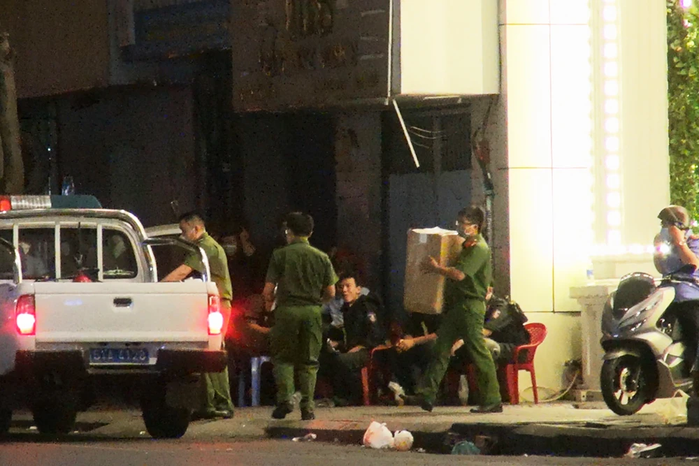 Công an niêm phong, đưa các tài liệu ra khỏi nhà bà Hằng trên đường Ngô Đức Kế, quận 1. Ảnh: NT