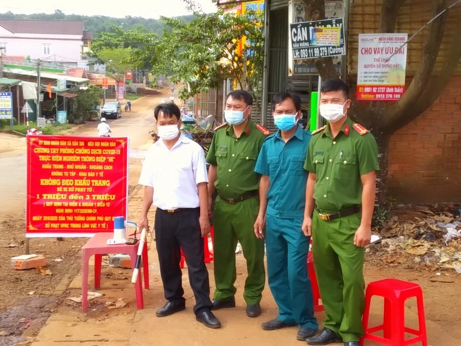 Lực lượng chức năng chốt chặn tại các địa điểm liên quan để phòng chống dịch.