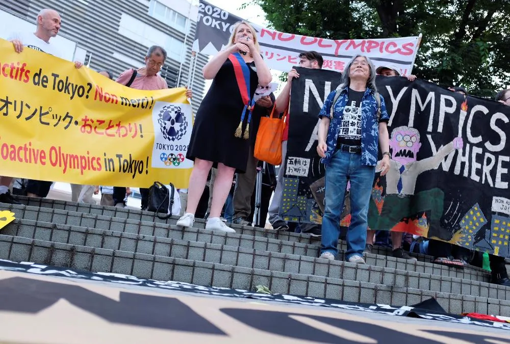 Riêng với nhóm khách quốc tế, cụ thể là đến từ Los Angeles và Paris họ hòa cùng người Nhật biểu tình ở Tokyo là vì sự cố sóng thần và động đất lớn ở Fukushima khiến hàng chục ngàn người chết, rò rỉ chất phóng xạ từ nhà máy điện hạt nhân khiến người dân phải bỏ xứ ra đi mà nhà nước Nhật vẫn khắc phục rất chậm do thiếu kinh phí. Đời sống môi trường bị đe dọa, phóng xạ không lo dồn kinh phí khắc phục và đền cho dân mà lại bỏ ra 12,6 tỉ USD tổ chức đại hội thể thao.