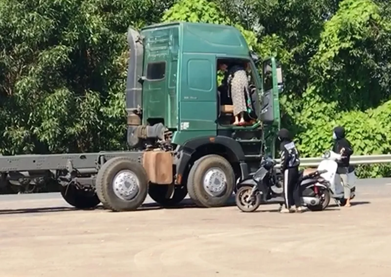 Trước đó, PV cũng ghi nhận một người phụ nữ lên đưa 2 vali lên xe container đang chờ sẳn ở một cây xăng trên đường tránh phía Nam hầm Hải Vân, gần ngã tư Túy Loan (huyện Hòa Vang).