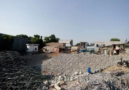 Khu vực thi công công trình cải tạo kênh Ba Bò gây sạt, nứt nhà dân. Ảnh: KB