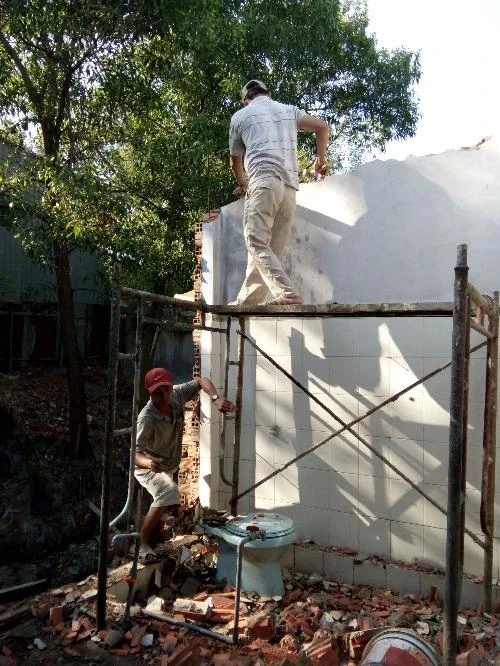 Sáng 20-4, người dân ở cạnh công trình cải tạo kênh Ba Bò (thuộc khu phố 1, phường Bình Chiểu, quận Thủ Đức, TP.HCM) phải thuê thợ xây sửa lại nhà hư hỏng do ảnh hưởng bởi quá trình thi công công trình này.