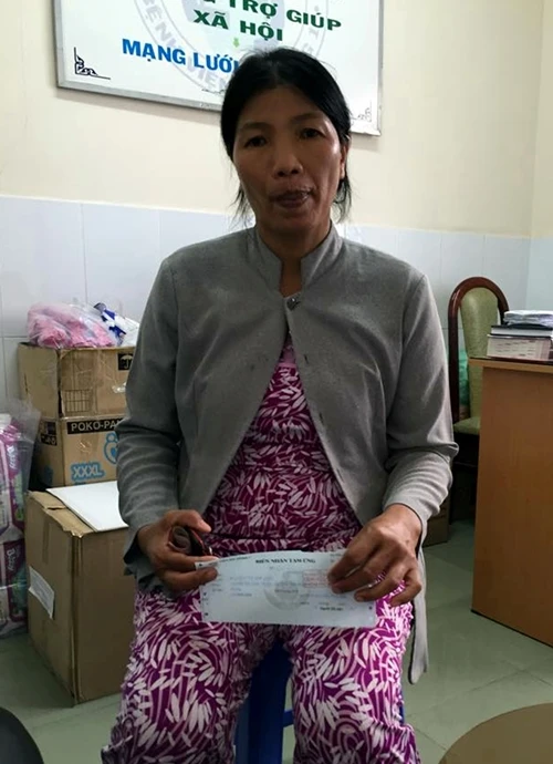 Cô ruột của bé Kim Linh nhận biên lai viện phí từ nhóm người mẫu Trang Trần