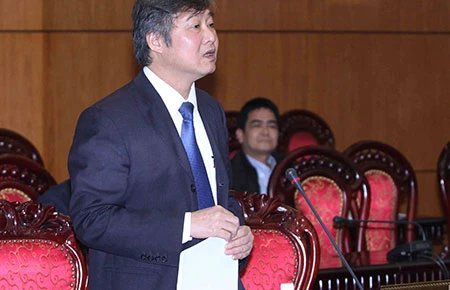 Phó Chánh án TAND Tối cao Nguyễn Sơn trình bày tờ trình về PL Xử lý hành chính các hành vi cản trở hoạt động tố tụng của TAND. Ảnh: TTXVN