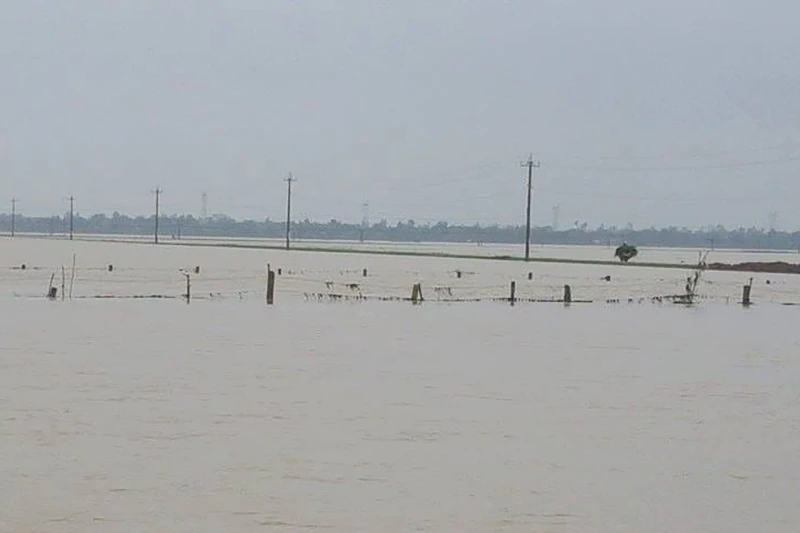Nước lũ lên tại xã Quảng Lưu (huyện Quảng Trạch).