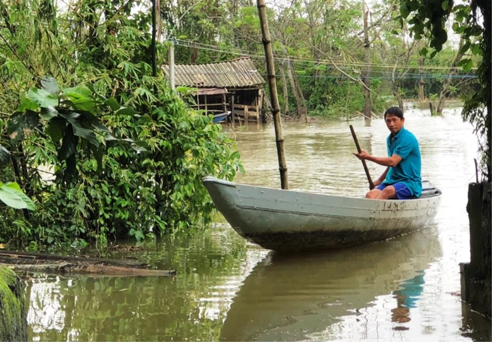 Các nơi bị chia cắt, người dân phải di chuyển bằng ghe. Ảnh: HẢI HIẾU