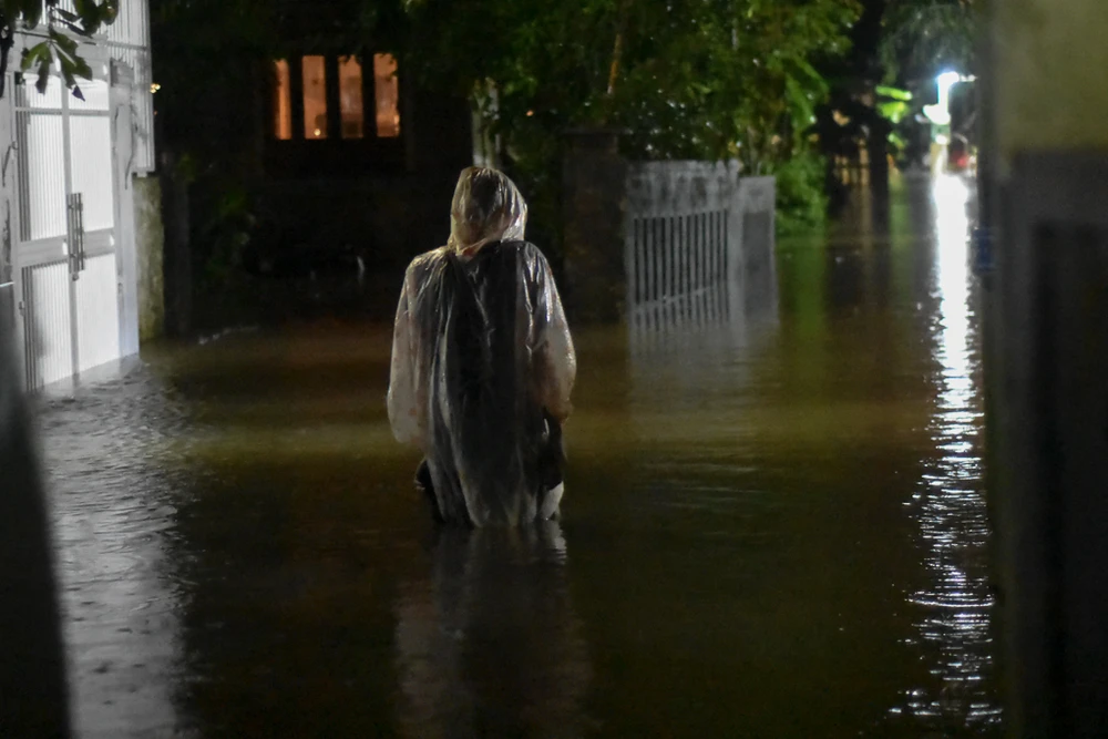 Ngay sau đó, lãnh đạo tỉnh Quảng Trị đã có mặt tại hiện trường chỉ đạo các lực lượng liên quan khẩn cấp tăng cường quân số tìm kiếm nạn nhân, đồng thời tăng cường lực lượng di dời dân khỏi khu vực nguy hiểm. Đến khoảng 10 giờ tối cùng ngày thì nước bắt đầu rút dần. Tuy nhiên, theo ghi nhận của PV tại một số vùng thấp trũng thì đến 2 giờ sáng 9-12 mực nước vẫn còn sâu từ 0,5 m đến 1 m. Ảnh: NGUYỄN DO