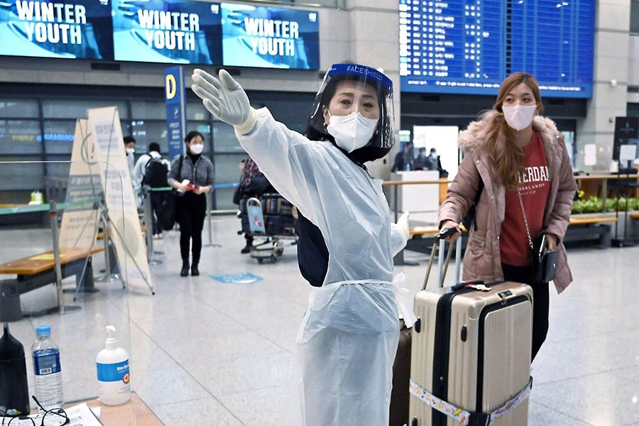 Nhân viên y tế Hàn Quốc tại sân bay quốc tế Incheon ở TP Incheon