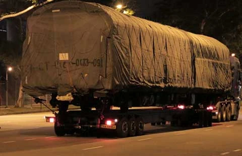 Các toa tàu cao tốc bị lỗi được đưa đến cảng Jurong, khu công nghiệp phía tây Singapore. Ảnh: FACTWIRE