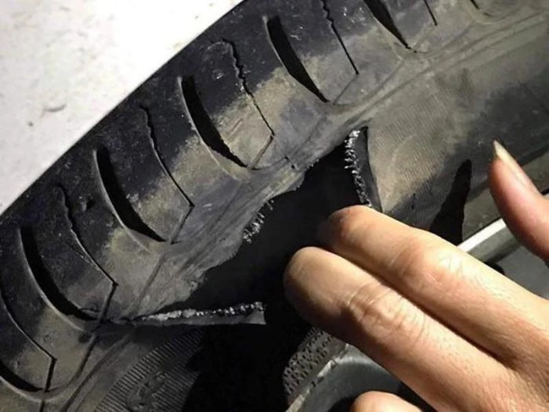 Nhiều ô tô bị rách lốp do đá cứa. Ảnh: Facebook.