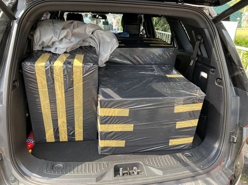 Xe tải chở các thùng thuốc lá điện tử không có nguồn gốc rõ ràng cũng bị CSGT phát hiện tại chốt kiểm dịch ở sân bay. Ảnh: TSN