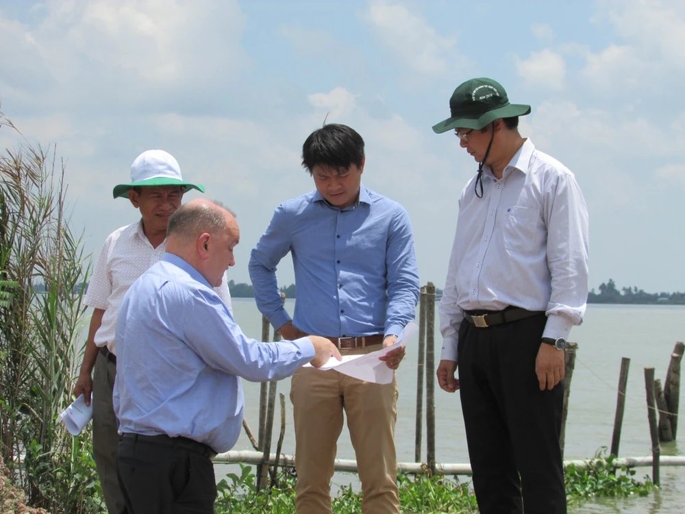 Phó Chủ tịch UBND TP Cần Thơ Trương Quang Hoài Nam (bìa phải) dẫn đại diện tập đoàn Thoresen khảo sát thực địa tại khu vực 400m ở Cảng Cái Cui. Ảnh: N.NAM