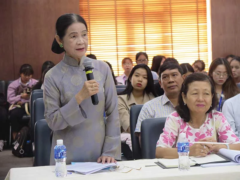 Luật sư Trương Thị Hòa kiến nghị nhà trường đào tạo cho sinh viên không chỉ kiến thức chuyên sâu mà còn kiến thức đa năng nhiều mặt. Ảnh: PHẠM ANH