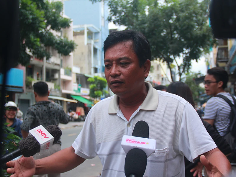 Một tài xế tuyến buýt 51 đang phản ánh tình hình chậm trả tiền trợ giá với các nhà báo. Ảnh: Đ.LONG