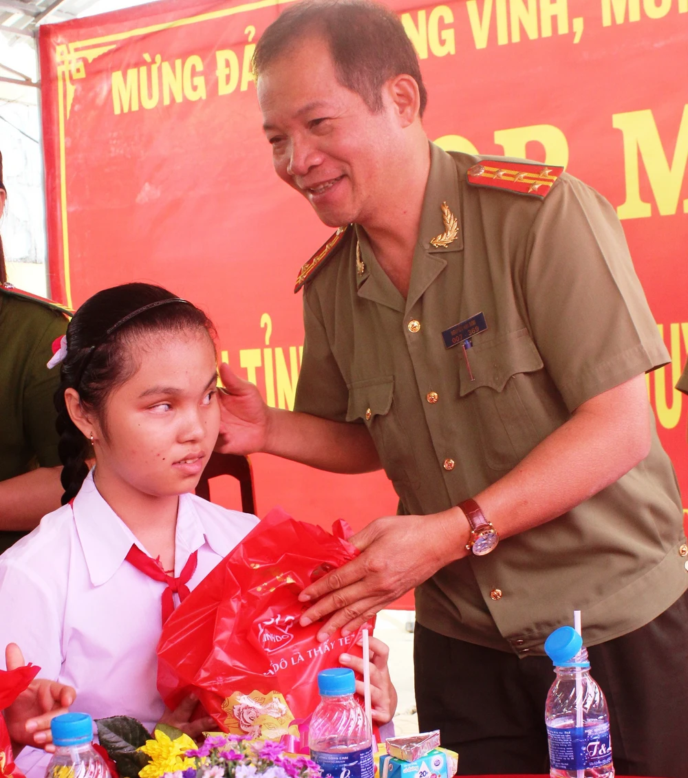 Giám đốc Công an Hậu Giang trao quà dịp tết Nguyên đán 2015 cho trẻ em khuyết tật tỉnh Hậu Giang.