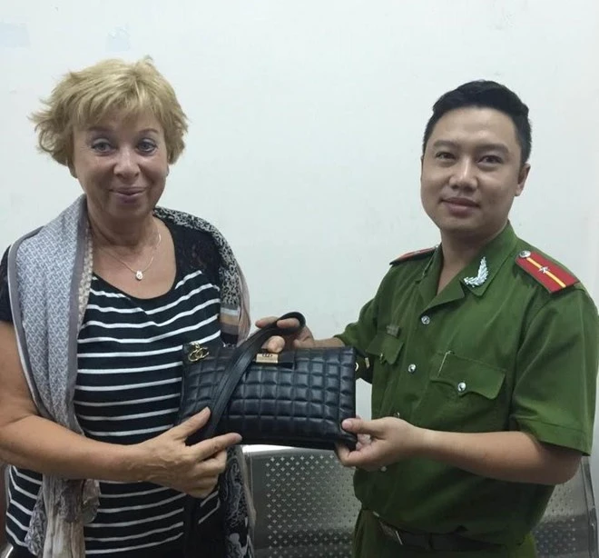 Ảnh minh họa: Công an quận 1 trao trả túi xách cho một nữ du khách.