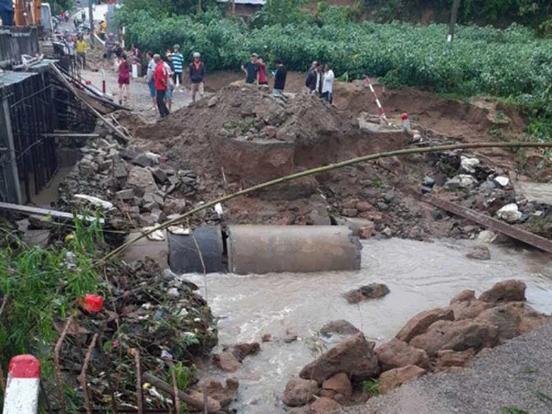 Đường giao thông đoạn qua xã Đa Lộc (huyện Đồng Xuân, Phú Yên) bị hư hỏng nặng sau bão. Ảnh: T.LỘC