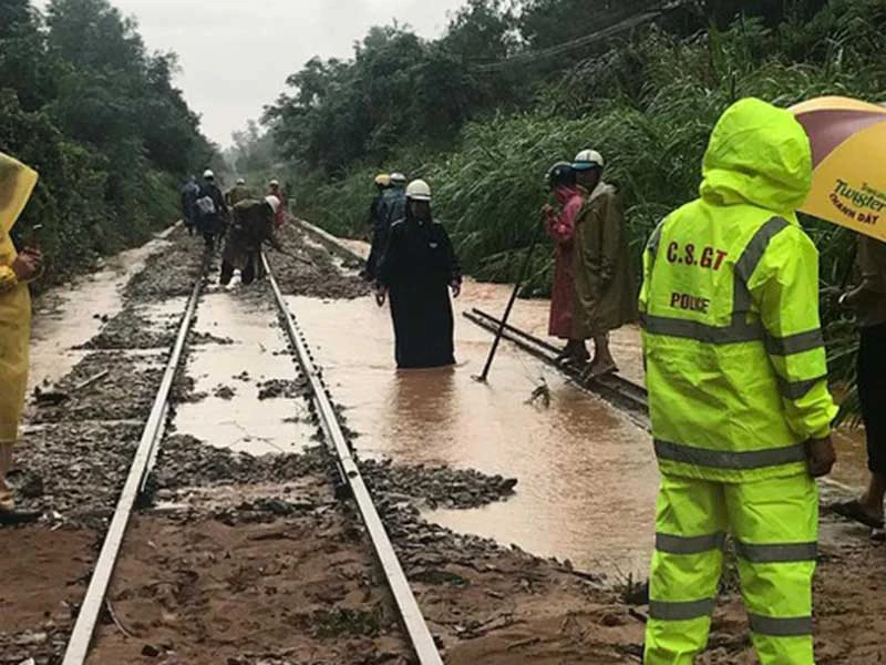 Đường sắt ở Bình Định bị ngập, sạt lở nhiều điểm vì bão số 5. Ảnh: HOÀI AN