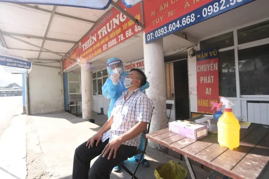 Hành khách xét nghiệm trước khi lên xe. Ảnh: PHI HÙNG