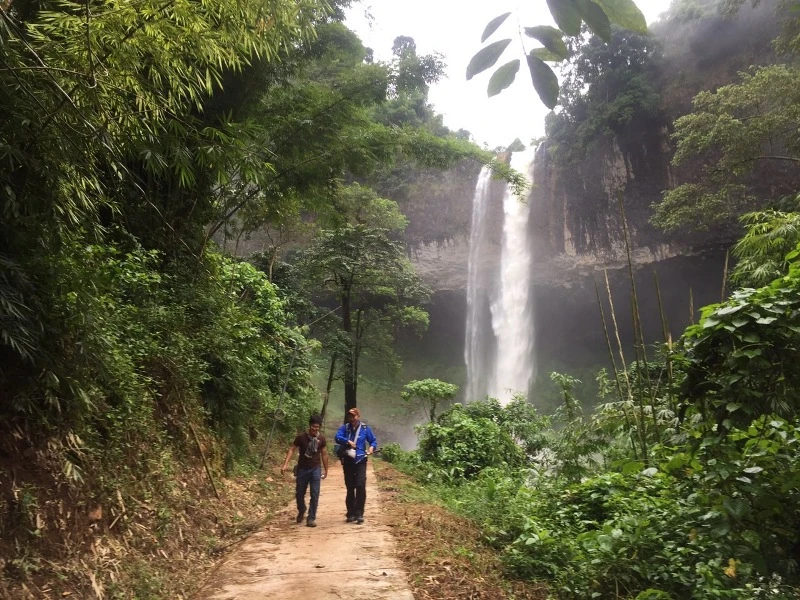 Du khách hòa mình không khí mát mẻ và hoang sơ của núi rừng khi đi ngắm thác thác Lưu Ly tỉnh Đak Nông