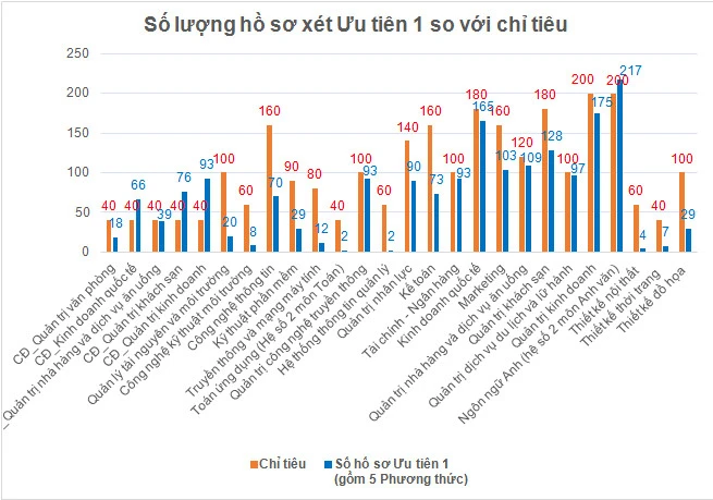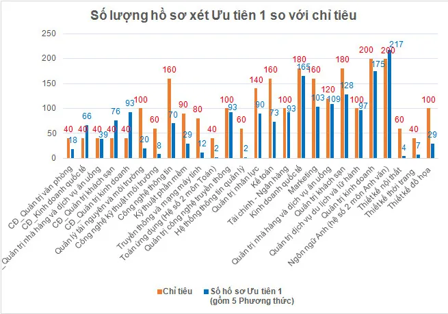 Số lượng hồ sơ xét ưu tiên 1 so với chỉ tiêu của ĐH Hoa Sen
