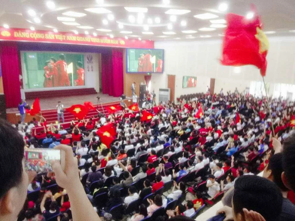Sinh viên trường Đại học Sư phạm Kỹ thuật cổ vũ cho đội tuyển Việt Nam