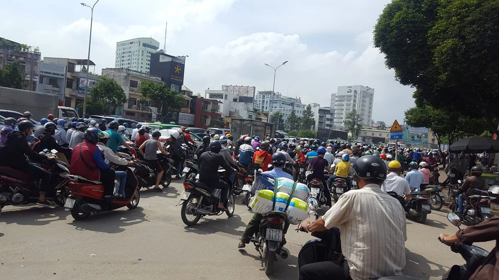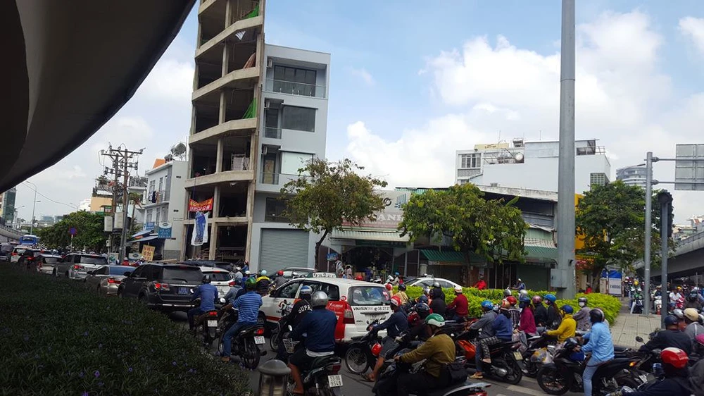 Đường Nguyễn Hữu Cảnh kẹt xe nghiêm trọng. Ảnh: ĐÀO TRANG