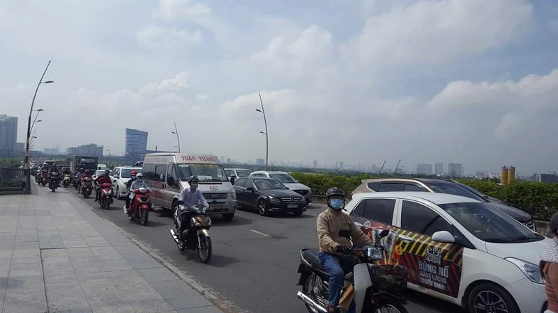 Cầu Sài Gòn kẹt xe kéo dài. Ảnh: ĐÀO TRANG