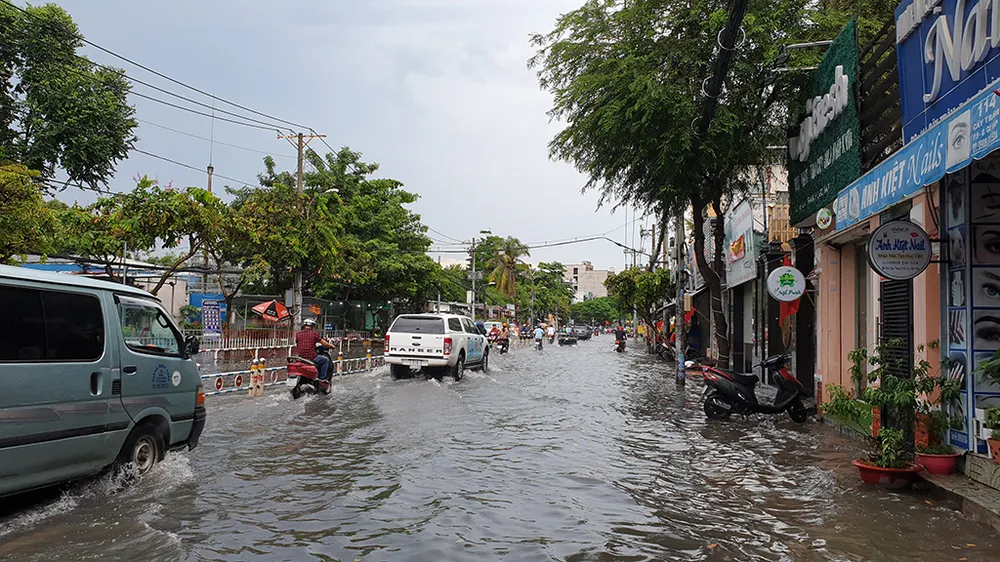 Chiều ngày 1-9, trận mưa lớn đổ xuống nhiều địa bàn quận huyện tại TP.HCM khiến một số tuyến đường bị ngập. Ảnh NT