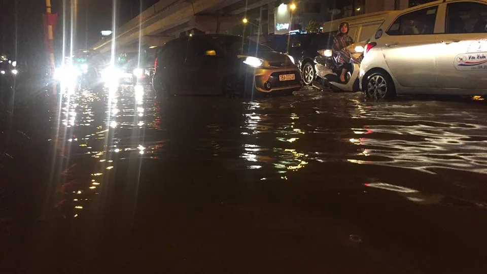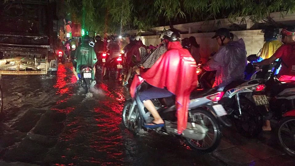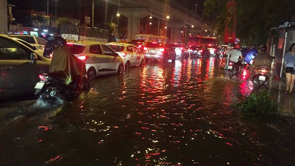 Mưa lớn làm ngập nhiều tuyến đường ở Hà Nội.