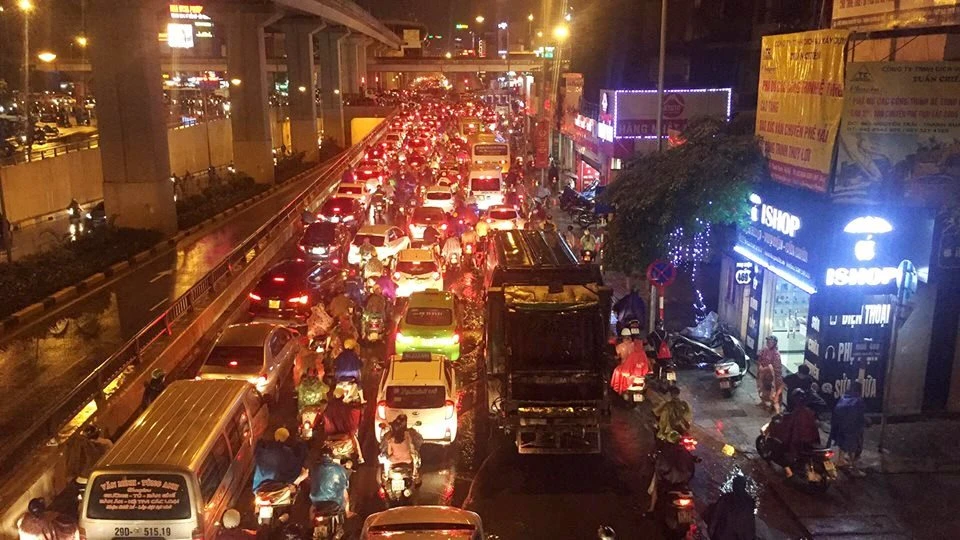 Mưa lớn gây ách tắc tuyến đường giao giữa Nguyễn Trãi và Nguyễn Xiển.