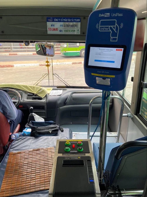 Hệ thống thanh toán tự động trên xe buýt. Ảnh: THU TRINH