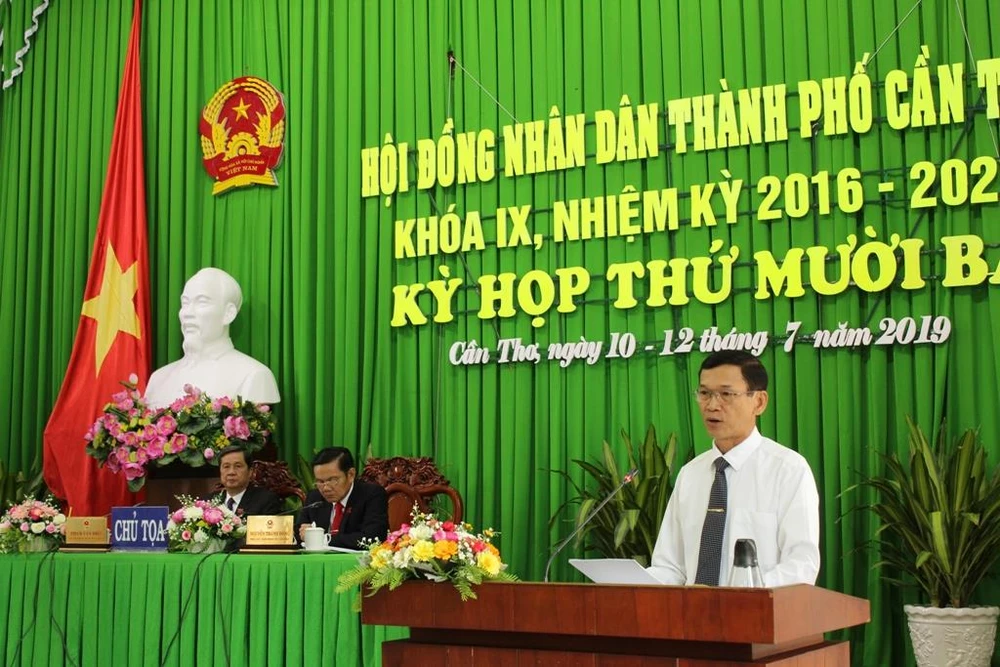 Chánh án TAND TP Cần Thơ Nguyễn Thanh Thiên báo cáo tại kỳ họp HĐND TP Cần Thơ ngày 10-7. Ảnh: NN