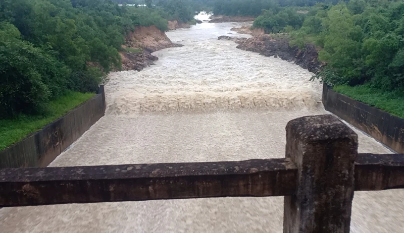 Hồ chứa nước Phú Xuân xả lũ. Ảnh: TL