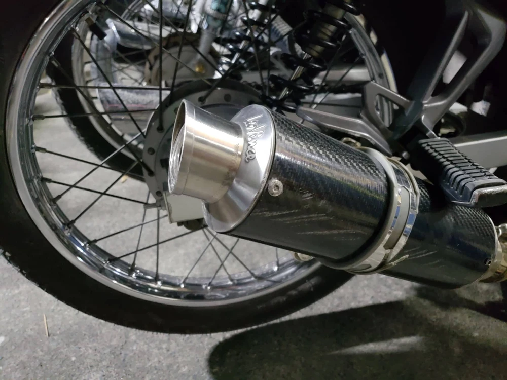 Lọa pô tăng tốc được gắn trên một chiếc Exciter để phục vụ đi bão. Ảnh: TS