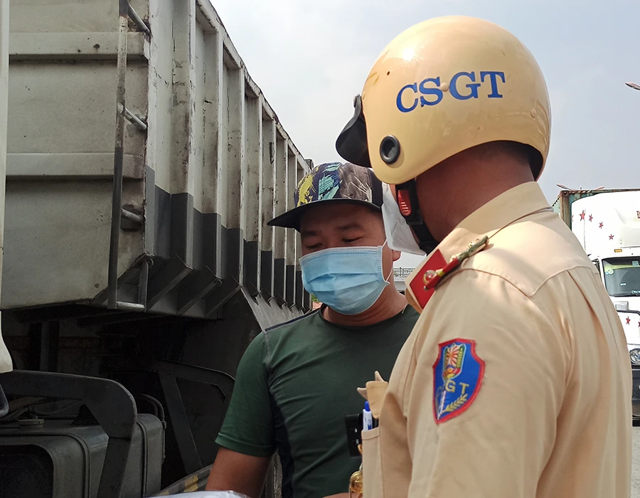 Khi dừng một xe ben, Đại úy Huỳnh Hữu Đạt (cán bộ Đội CSGT Rạch Chiếc) giải thích cho tài xế: “Xe anh trong đăng ký có KDVT mà để biển số trắng chạy trên đường là sai quy định, giờ CSGT lập biên bản với trường hợp xe chưa chuyển đổi biển số trắng sang biển số vàng”.