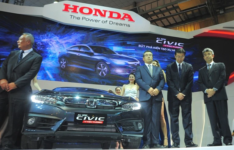 Honda trình diễn chiếc Civic thế hệ thứ 10-2016 hoàn toàn mới nhập khẩu từ Thái Lan. Đây là thế hệ được đánh giá có thiết kế phá cách và mang phong cách thể thao nhất từ trước đến nay, kiến tạo nên chuẩn mực mới trong phân khúc sedan với không gian rộng rãi, nội thất tiện nghi cùng nhiều tính năng an toàn và đặc biệt là động cơ 1.5 lít VTEC TURBO hoàn toàn mới mang đến khả năng vận hành mạnh mẽ và tiết kiệm nhiên liệu vượt trội. Tại triển lãm, Honda còn giới thiệu chiếc CR-V phiên bản đặc biệt được trang bị bộ phụ kiện chính hãng tiêu chuẩn Honda toàn cầu không chỉ giúp xe trở nên phong cách, tăng cường khí động học mà còn nâng cao khả năng vận hành của xe cùng chương trình khuyến mãi hấp dẫn.