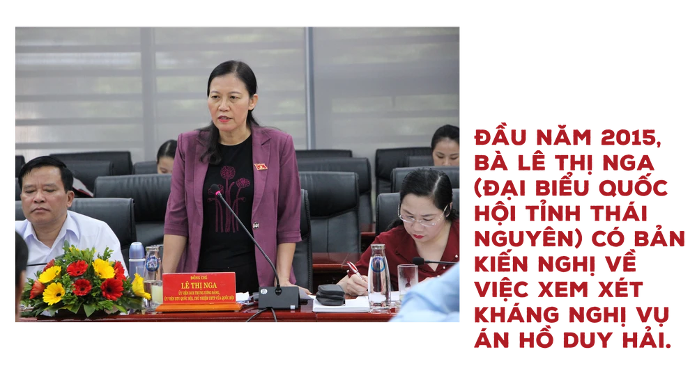 Đầu năm 2015, bà Lê Thị Nga (đại biểu Quốc hội tỉnh Thái Nguyên) có bản kiến nghị về việc xem xét kháng nghị vụ án Hồ Duy Hải.