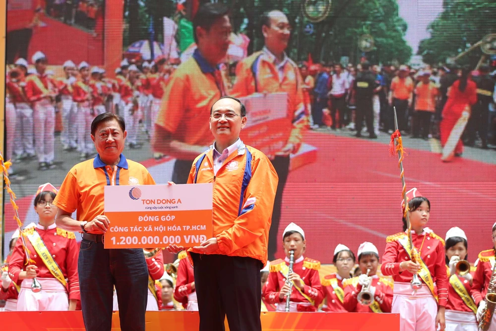 Ngoài việc góp phần xã hội hóa thể thao, phó tổng giám đốc Công ty CP Tôn Đông Á, ông Hồ Song Ngọc còn đại diện cuộc đua trao tặng 1,2 tỉ đồng cho phong trào công tác xã hội của TP.HCM. Suốt hành trình 20 chặng đua, nhà tài trợ cũng trao tặng hơn 1 tỉ đồng, giúp hàng trăm học sinh nghèo hiếu học nối dài cơ hội đến trường.