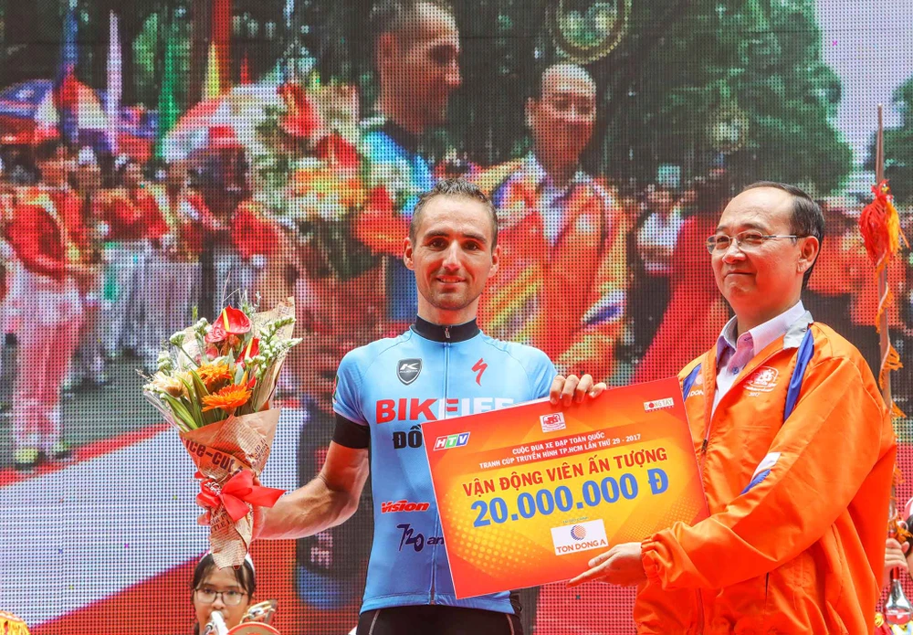 Với sự cống hiến hết và thi đấu mình trên đường đua, tay đua Bikelife Đồng Nai - Loic Desriac được trao giải VĐV ấn tượng - danh hiệu do Liên đoàn Xe đạp và Môtô Thể thao Việt Nam trao tặng.