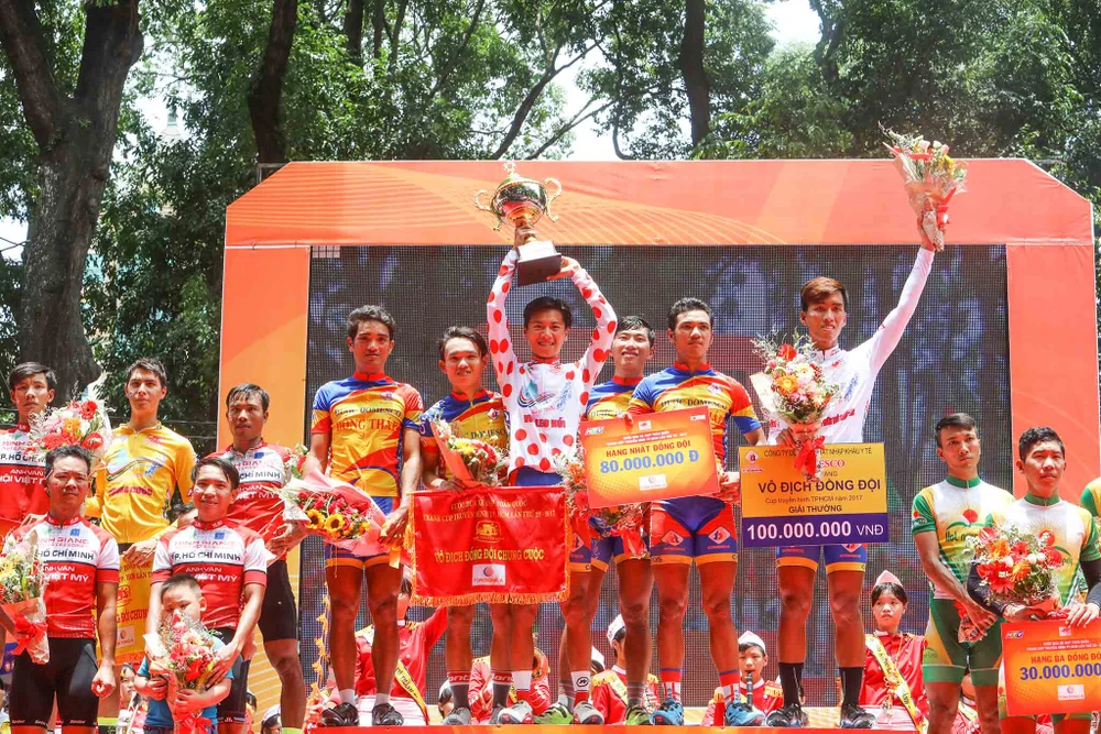 Đội đua không được đánh giá cao Premium Cycling Vĩnh Long nhận giải Phong cách. ẢNH: PHẠM HUY