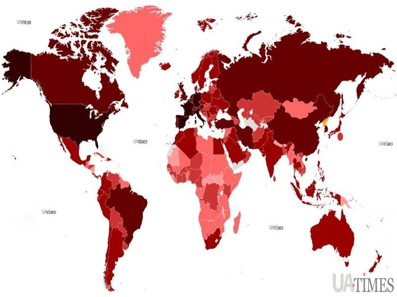 Tính đến đầu tháng 9, hơn 200 quốc gia và vùng lãnh thổ (tô đỏ) đã ghi nhận sự xuất hiện của SARS-CoV-2. Ảnh: UATIMES