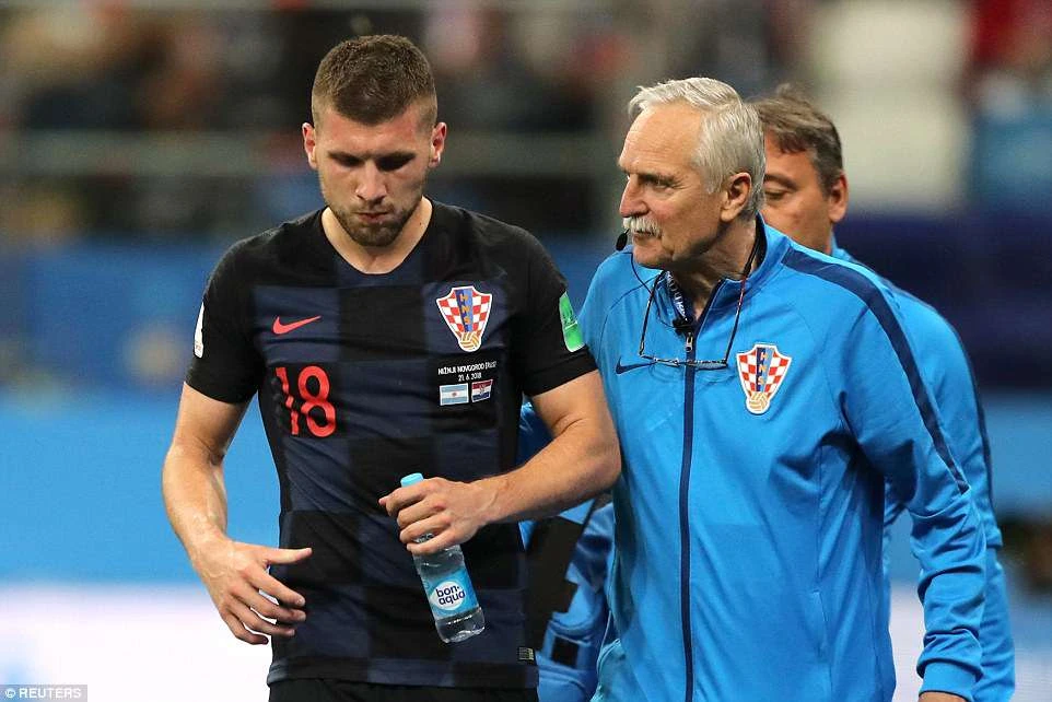 Vừa ghi bàn mở tỉ số được 4 phút, Ente Rebic phải rời sân vì chấn thương.
