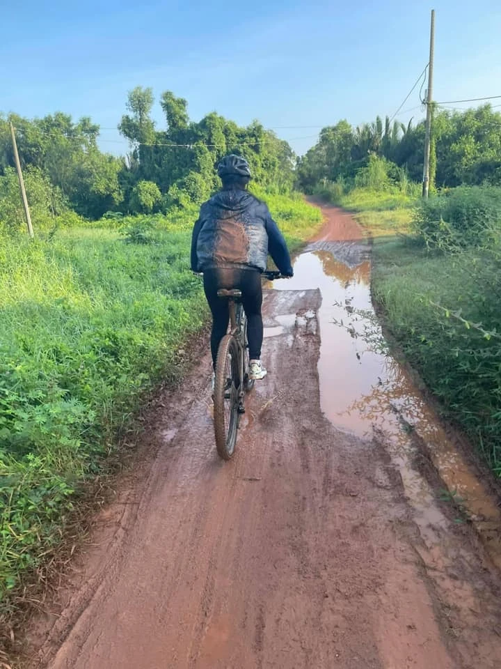 Do tập luyện tại nhà nên cô tận dụng chiếc ghế, gối phòng khách để hỗ trợ buổi tập. Kim Duyên từng mệt mỏi với việc tập luyện bằng hình thức online cô khủng hoảng, không ít lần nằm vật ra sàn.