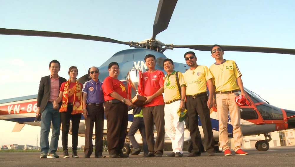 Chiếc trực thăng bay trên bầu trời sân Lạch Tray trong sự kiện trao cúp có một không hai.