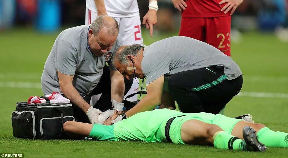 Patricio sau đó nằm sân và phải nhờ đội ngũ y tế chăm sóc.